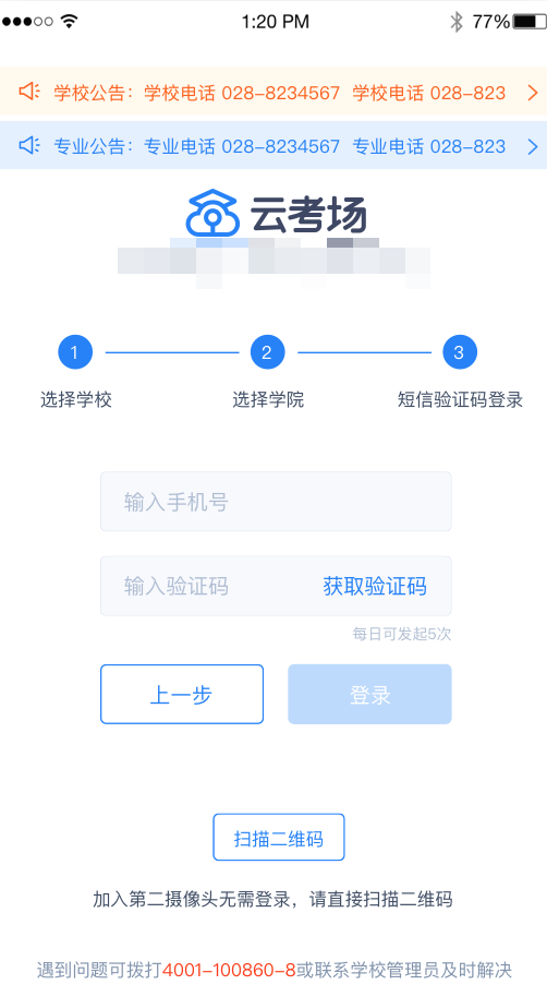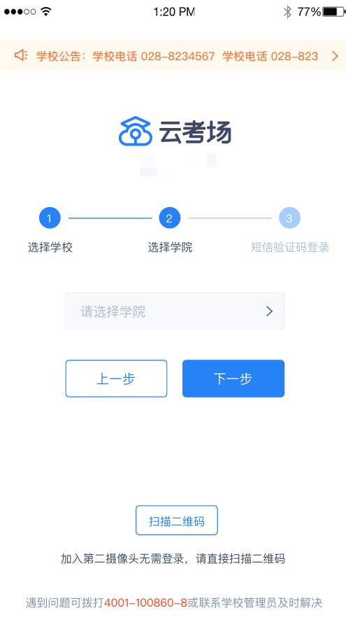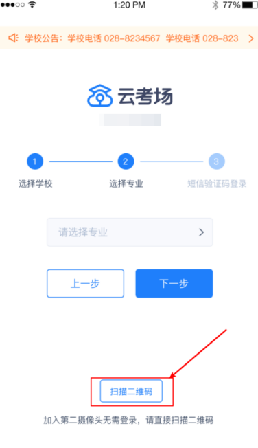 b. 使用第二部手机打开“云考场”App,并点击“扫描二维码”按钮扫描该二维码