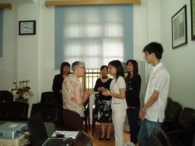 在访问过程中,学院向客人介绍了太阳集团tcy8722这几年来双语教学所取得的成就及我院教学发展研究方向,双方并就两校本-研学生的交流及教育发展问题了进行了讨论。随后,Maggy与在场师生展开了轻松诙谐的交流,其中太阳集团tcy8722在校本科生、研究生分别就我国留学生在该校学习及费用等问题进行提问,得到Maggy的精彩回复与解答,赢得了在场师生的阵阵掌声。