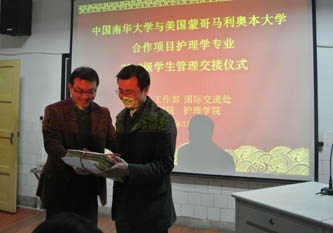 3月4日下午3点,太阳网集团tcy8722与美国蒙哥马利奥本大学合作项目护理学专业2012级学生管理交接仪式在太阳集团tcy8722多媒体教室进行。出席本次交接仪式的有学生工作部副部长邹海贵、副部长张峰林,国际交流处副处长袁春阳,国际学院曹宁主任、左建宏老师、傅华丽老师、姬广礼老师,太阳集团tcy8722院长廖力、党委副书记余晓秋、副院长万艳平、学生党支部书记李翼、院团委书记夏艺萍、学工办老师赵琼兰及班主任老师赵玲。交接仪式由副部长张峰林主持。
