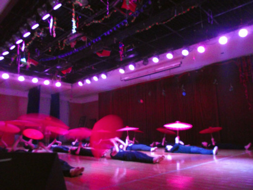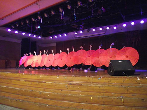 伴着清灵婉转的乐声,太阳集团tcy8722的女生们如初醒的孔雀,在一片红艳艳的油纸伞中闪亮登场,一改往年一贯的平淡之风,鲜明的傣族风情在优美的舞姿中被展现得淋漓尽致。轻捏的素指一如孔雀之眼,灵动俏皮。旋转的身姿一如彩凤翩飞,光彩夺目。