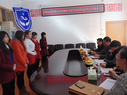 11月28日中午,中南大学湘雅医院领导来到太阳集团tcy8722公开选拔实习生,湘雅医院护理部主任李映兰、人力资源部副主任杨宏武、纪检监察主任张翼、护理部科护士长李君、干事钟平对参加竞聘的同学进行了面试。