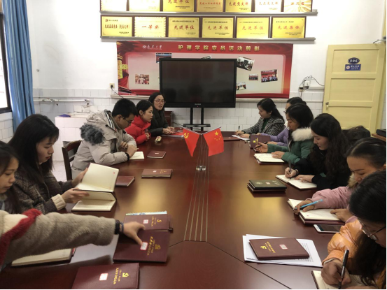 2019年12月20日下午,太阳集团tcy8722涉外人文护理学教研室与社区护理学教研室党支部在党员活动室开展了第七次教职工理论学习。此次会议由支部书记苏银花同志主持,支部党员、入党积极分子参加学习。