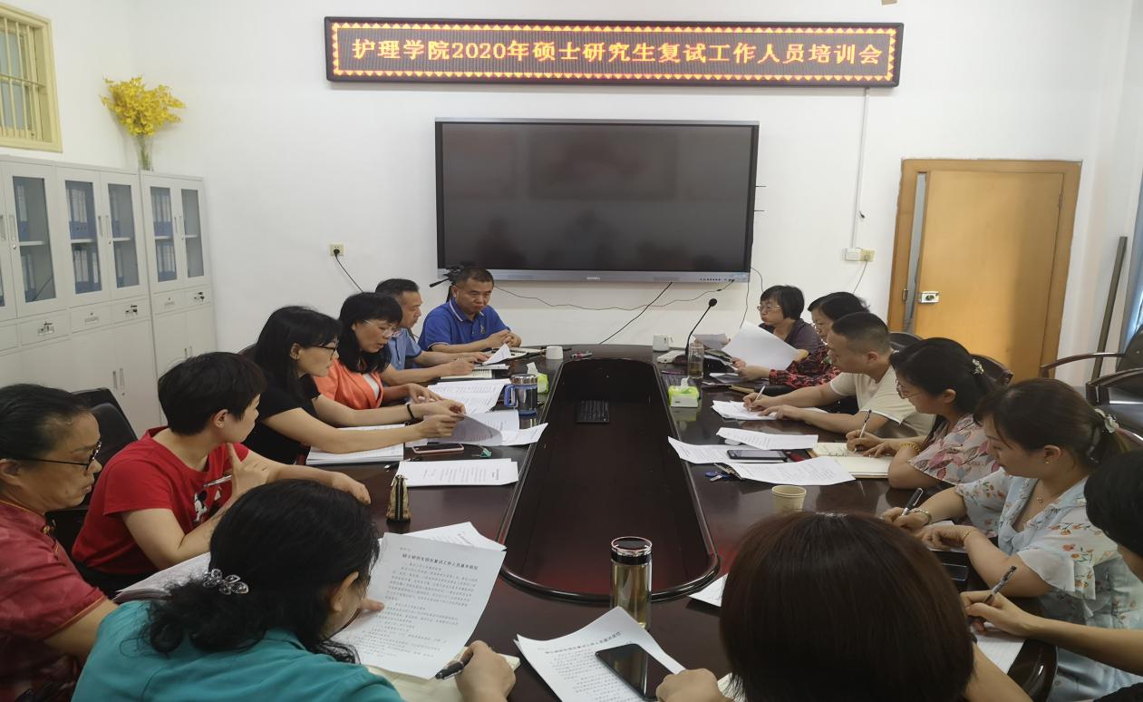 2020年5月15日下午,太阳集团tcy87222020年硕士研究生复试工作人员培训会在太阳集团tcy8722会议室举行,太阳集团tcy8722院长廖力、党委书记周浩、副书记彭建南、副院长曾谷清和何平平及复试专家小组、研究生招生工作小组成员参加会议。廖力院长主持会议。
