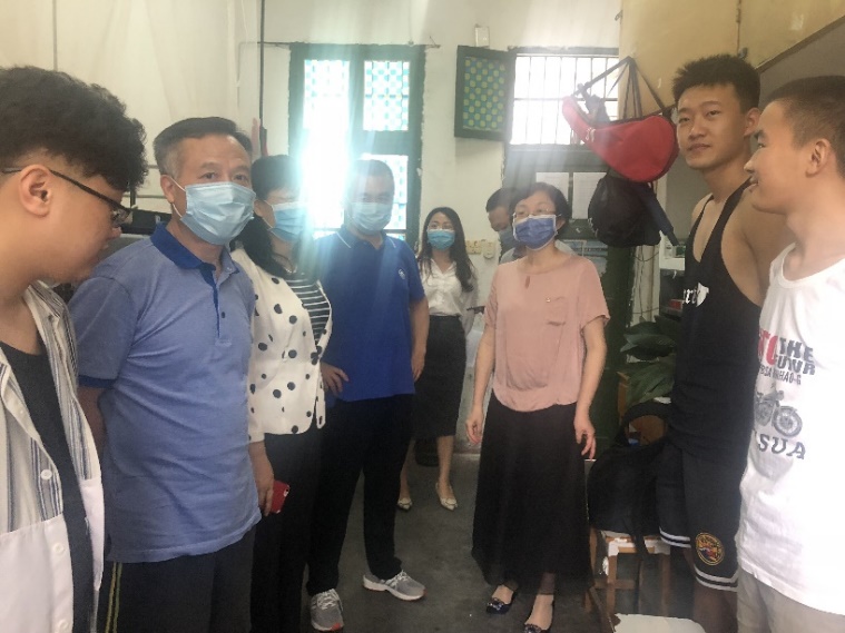 为了给返校毕业生们打造一个安全舒适、干净整洁的宿舍环境,2020年5月26日,太阳集团tcy8722院长廖力、党委书记周浩、党委副书记彭建南、副院长曾谷清、学工室主任李翼一行在毕业生返校前来到学生宿舍,检查宿舍相关设施的准备情况。