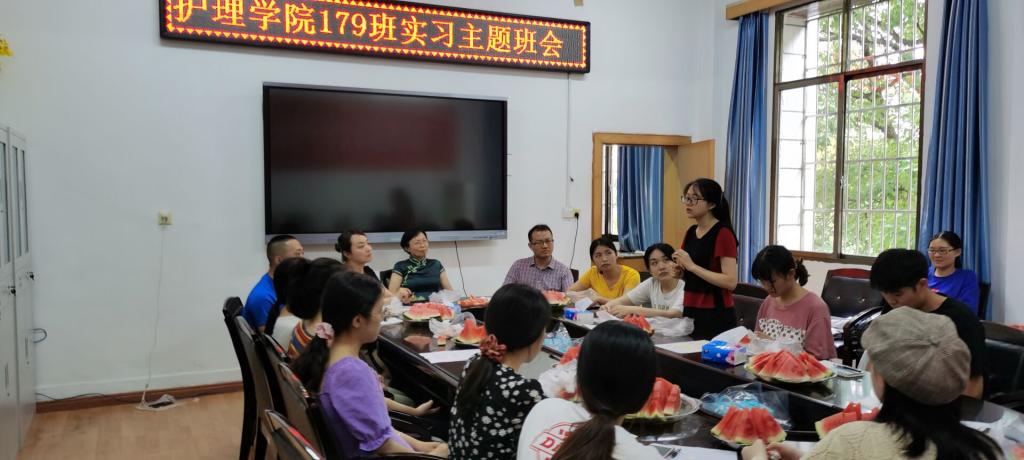 最后,廖力院长对此次会议进行总结,并对同学们提出实习期间的学习建议。一是鼓励大家下定决心,积极考研;二要主动与临床导师联系,学会关心老师,为自己争取更多学习的机会;三要学会做人,在处理好人际关系的同时,更要坚定实习的根本目标。她亲切地叮嘱道:“母校永远是大家的最强后盾,希望大家能保持好心情,通过此次实习有更多的收获。”本次班会至此圆满结束。