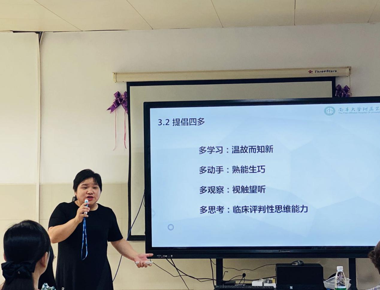胡啸玲主任简要介绍了麻醉科室的基本情况,希望大家在实习的过程中时刻保持冷静,明确医务工作者肩负的责任,以严谨的态度对待每一位患者,与患者做到有效沟通,以批判的思维来发现问题,做合格的医嘱执行者和监督人。