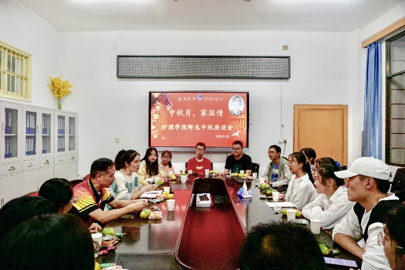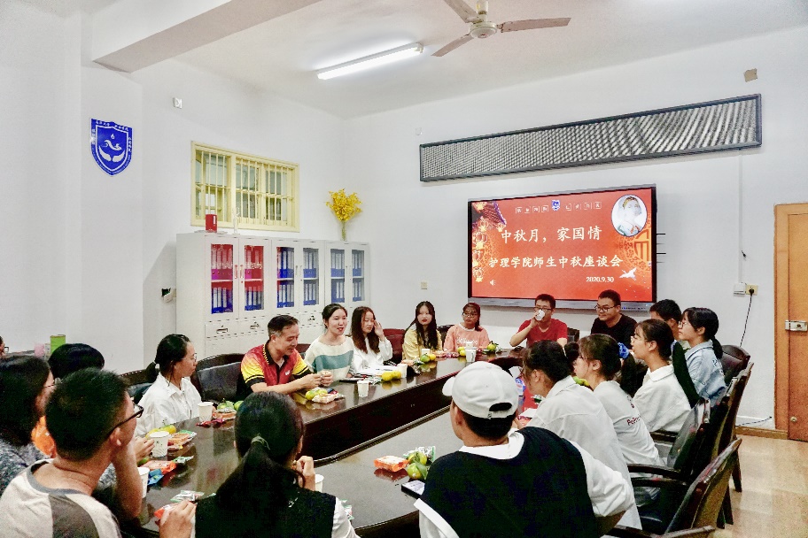 2020年9月30日晚,太阳集团tcy8722党委副书记彭建南、团委书记夏代会在学院会议室主持召开师生中秋座谈会,对第一次离家度过国庆节和中秋节的2020级新生代表给予温暖与关怀。