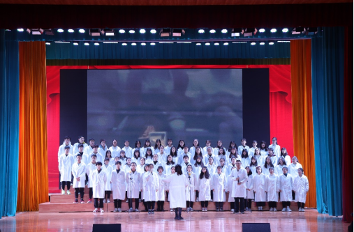 迎新会在活力四射的爵士舞中拉开序幕。院歌《爱心飞扬》为合唱比赛曲目,比赛分两轮进行,上半轮由2018级5-8班、2020级5-8班和2019级5-9班依次演唱。经过中场轻松愉悦的小游戏环节后,现场气氛逐渐活跃。随后,2018级1-4班,2020级1-4班,2019级1-4依次进行下半轮演唱,抑扬顿挫的歌声牵动着现场评委与观众的心,赢得了大家的阵阵掌声。合唱结束后,蒋穗斌老师为现场师生献唱《可可托海的牧羊人》,台下同学们纷纷挥舞手机灯光,积极互动,将现场氛围推向高潮。