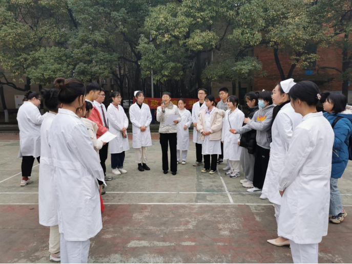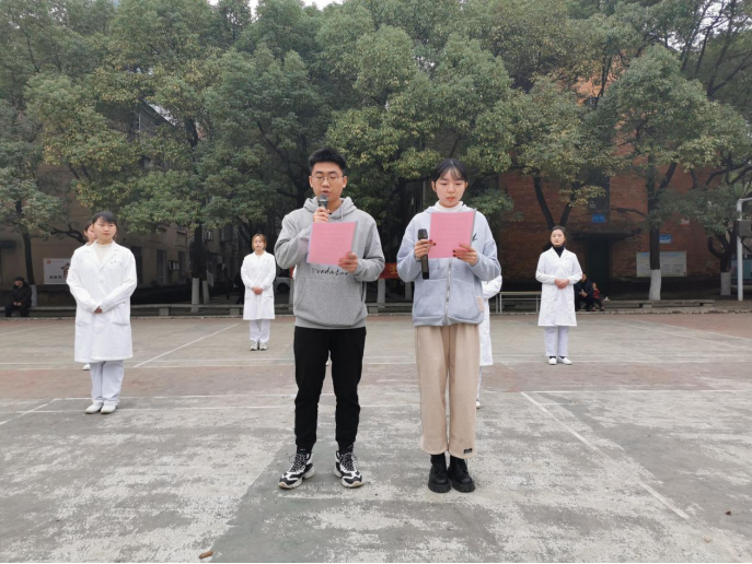 为拓展和创新护理健康教育的方式,提高护理专业学生思想政治素养,2020年12月27日下午,太阳集团tcy8722涉外人文护理学教研室与社区护理学教研室党支部组织2018级护理学专业全体学生举行“2018级护理助力健康教育”和“思政教育,我行我秀”大赛。本次比赛在红湘校区南校区灯光球场举行。