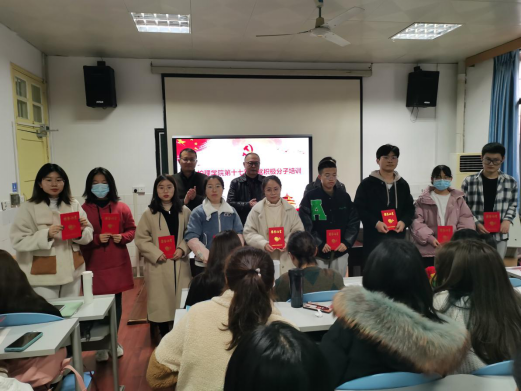 首先,副书记彭建南宣读入党积极分子优秀学员名单。随后,陈晓坚、彭建南为娄晓强、周阳、郑海欣等九名同学颁发优秀学员证书。紧接着,优秀学员代表娄晓强进行发言,他向在座的全体积极分子分享自己的学习收获,以及自身努力的方向。他表示,作为新时代青年大学生,应该坚定理想信念,注重将思想认识和理论实践相结合,不断提高自身素养。