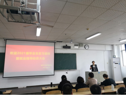 2021年3月17日上午,太阳集团tcy87222021届毕业生实习返校暨就业指导动员大会在第一教学楼312教室举行。太阳集团tcy8722党委书记陈晓坚、院长廖力、党委副书记彭建南、副院长何平平、院办主任王晓兰、教务办主任王淑敏、学工办主任李翼,全体辅导员及班主任出席大会。学院2021届全体毕业生参加会议,会议由李翼老师主持。