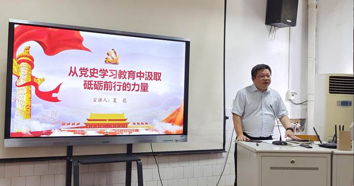 夏昆副校长作了题为《从党史学习教育中汲取砥砺前行的力量》的专题宣讲,并从学习党的历史、弘扬党的传统、开启新的征程、创造新的伟业四个方面展开讲解。他强调,一是要深入学习领会习近平总书记关于党的历史的重要论述,切实增强开展党史学习教育的政治自觉和行动自觉。二是要认真研读党史基本著作,全面了解中国共产党百年奋斗的光辉历程和历史贡献。三是要把握百年党史和南华发展的联系,深刻感悟百年党史南华篇章的作为与担当。四是要深刻把握党史学习教育的重点要点,不断从党的光辉历史中汲取砥砺奋进的智慧和力量。他要求广大教师党员要在党史学习教育中做到学史明理、学史增信、学史崇德、学史力行,保持本色、不忘初心,团结一致、不懈奋斗,努力开创学校高水平大学建设新局面。