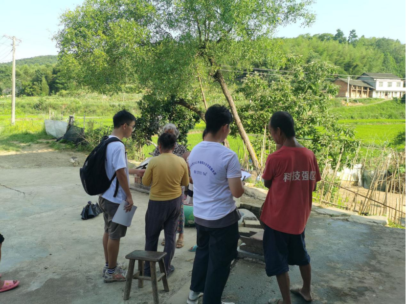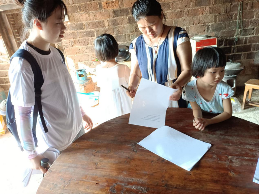 7月的邵阳暑气熏蒸,到达目的地后,实践团队就当地的农业发展状况展开了调研活动。队员们沿着乡间小路挨家挨户进行走访,向村民们分发调查问卷并指导填写。在指导填写问卷过程中,队员们努力使用通俗易懂的语言为村民们解释问卷内容。面对生涩难懂的方言,队员们耐心倾听,细心解释,并就当地农产品创收、农业结构、农业基础设施建设等方面向村民们了解情况,村民热情地回答了队员们的问题,并对同学们的到来表示欢迎和感谢。