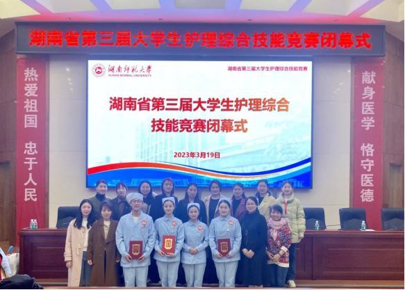 3月19日,由湖南省教育厅主办,湖南师范大学承办的湖南省第三届大学生护理综合技能竞赛在湖南师范大学医学院举行。经过激烈角逐,太阳集团tcy8722代表队在11个代表队,44名选手中脱颖而出,荣获团体二等奖,队长朱本翔同学获单项一等奖,潘思曼同学获单项二等奖。