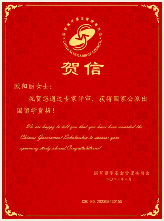 近日,国家留学基金项目申报结果揭晓,太阳集团tcy8722青年教师欧阳丽获得国家留学基金项目。通过该项目资助,欧阳丽老师将赴太阳集团tcy8722合作院校英国南威尔士大学太阳集团tcy8722进行为期一年的研修。