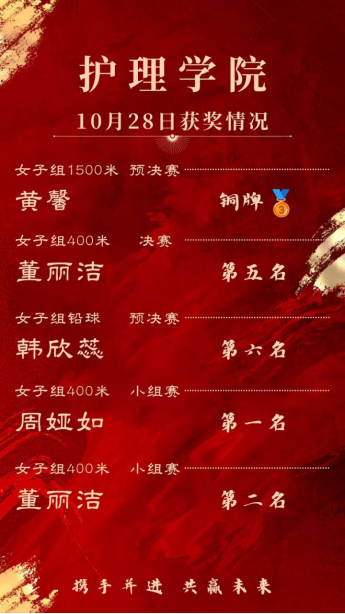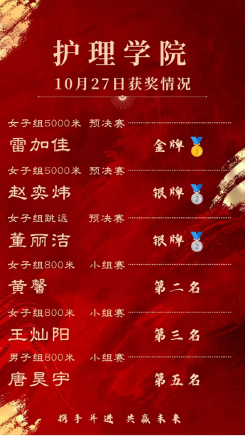 为期三天的校运会圆满落幕,运动场上我院运动健儿的精彩瞬间定格在我们的脑海中。在全体运动员和同学们的努力下取得了不错的成绩,荣获女子团体总分第八名的好成绩,并荣获大学生田径运动会精神文明奖。校运会的举办展现了我院运动员们的出色表现,也进一步加深了同学们的情感。他们用行动向我们展示青春力量,用意志向我们诠释护理人顽强拼搏、戮力前行的精神品质。