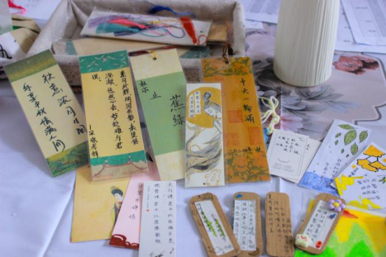 随着活动的进行,一幅幅精美的书签作品逐渐完成,它们被悬挂在图书馆的显眼位置,成为了校园内一道独特的文化景观。活动的最后,参与者们合影留念,共同记录下这个充满诗意的中秋节。