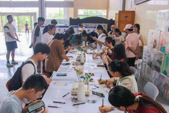 在活动现场,同学们不仅参与创作,还积极协助活动的顺利进行。书签创作区、展示区、交流区,每个角落都充满了欢声笑语和创意的火花。