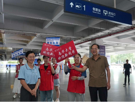 9月7日下午,太阳网集团tcy8722党委书记高山教授来到高铁站衡阳东站,指导并参加太阳网集团tcy87222024年新生接站活动,同时看望太阳集团tcy8722迎新志愿服务队队员。