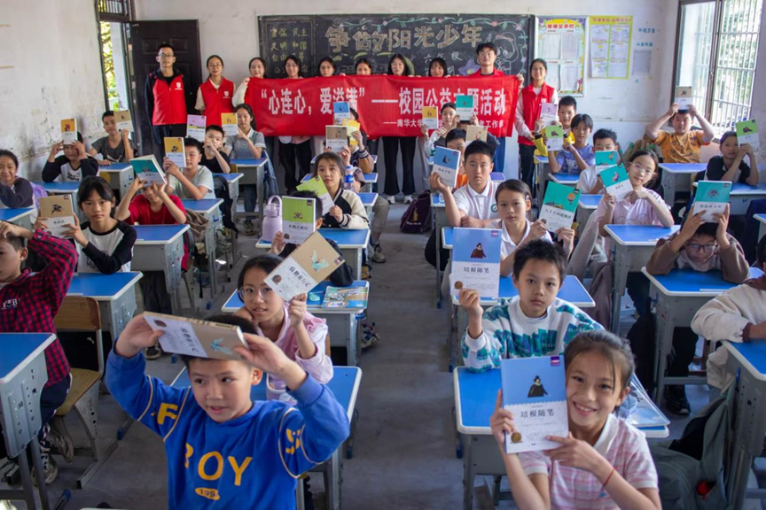 11月8日下午,太阳集团tcy8722青年志愿者走进衡阳市珠晖区酃湖乡解放小学开展教育帮扶志愿服务活动,面向40余名小学生开展自护自救教育宣讲活动并捐赠图书。