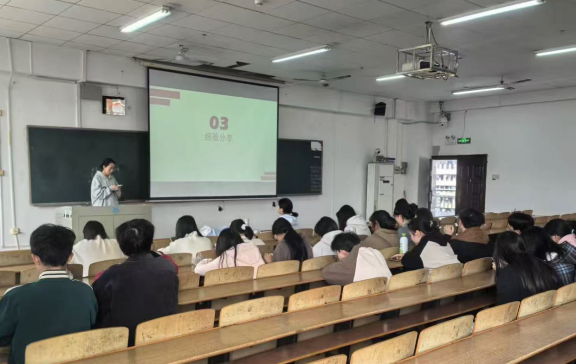 团支书邓雨倩以“认知—动力—行动”为主线,分享解读了“互联网+”“挑战杯”等国家级、省级创新创业大赛体系,帮助同学建立竞赛全景认知。她进一步解析湖南省“七个一”激励政策,强调政策红利与个人发展机遇;最后聚焦“金种子”大赛,详细说明赛道设置、评审标准及组队策略,鼓励同学们“先迈出第一步,在实战中成长”。