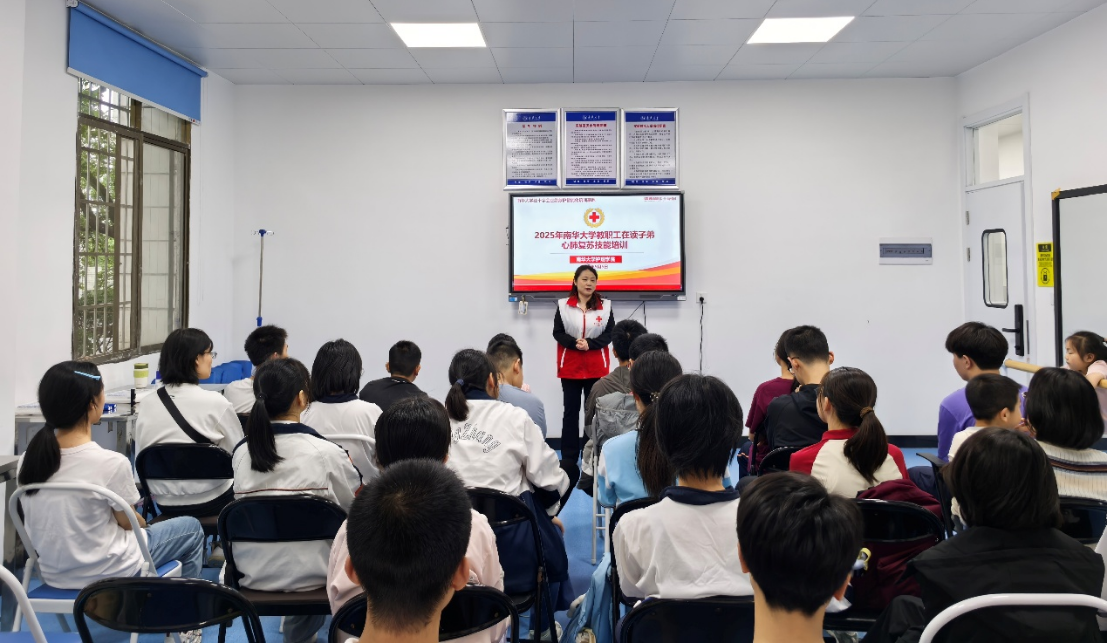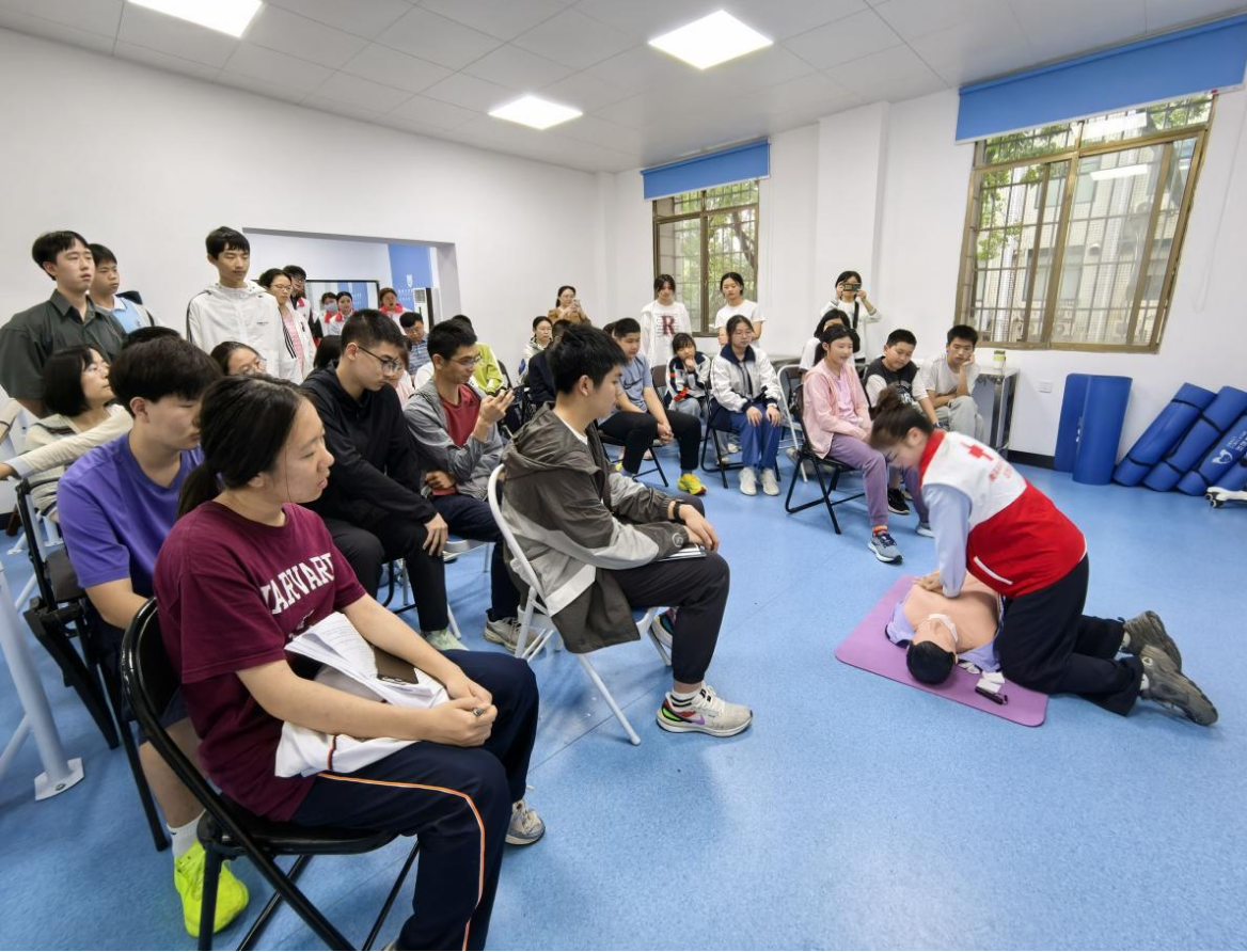 2025年5月5日下午,太阳集团tcy8722师生为本校子弟和周边社区初三学生义务开展“急救术(心肺复苏)”培训,旨在让学生及早掌握急救基本知识和技能,提升学生互救自救能力。