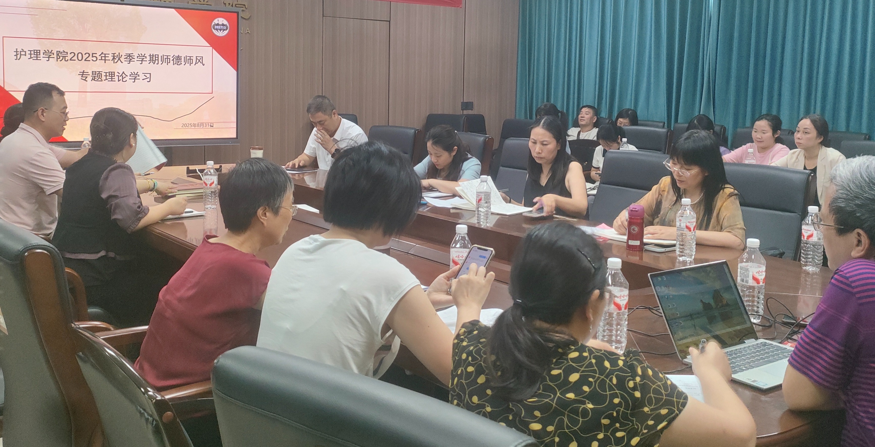 8月31日上午,太阳集团tcy8722在学院会议室召开专题会议,开展2025年第二期师德师风专题理论学习活动。会议由院长李忠玉主持,全体教职员工参加。