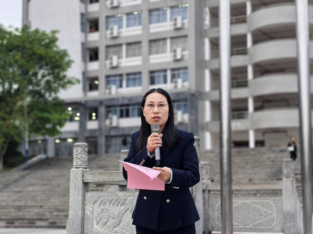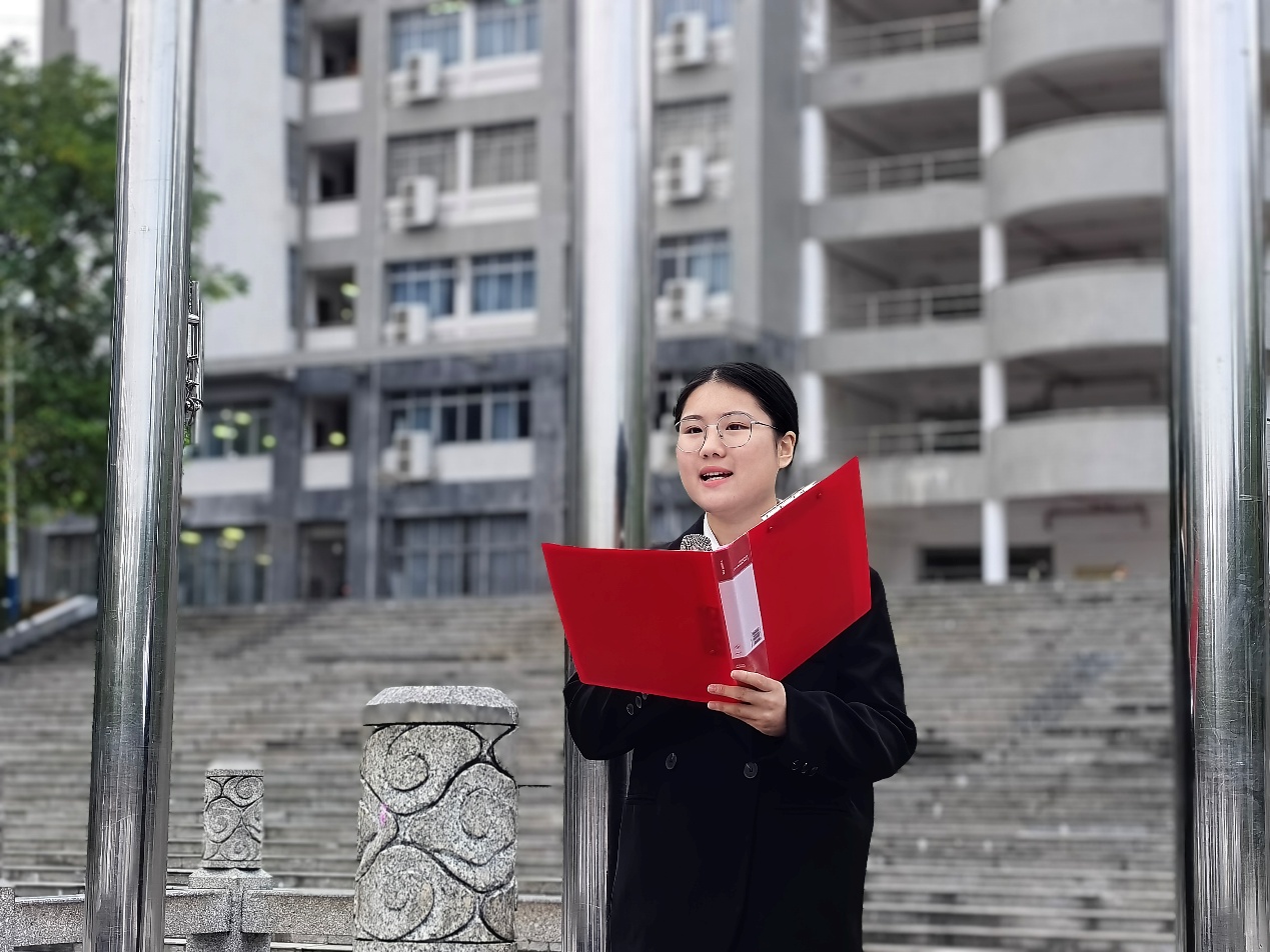 2024级护理学(创新班)黄婧芳同学以“铭记峥嵘史,担当时代任”为主题进行了国旗下的演讲。她号召全体同学铭记历史、缅怀先烈、珍爱和平,将“健康所系、性命相托”的誓言融入日常学习生活中,用实际行动践行护理职责,努力书写无愧于先辈、无愧于时代的青春篇章。