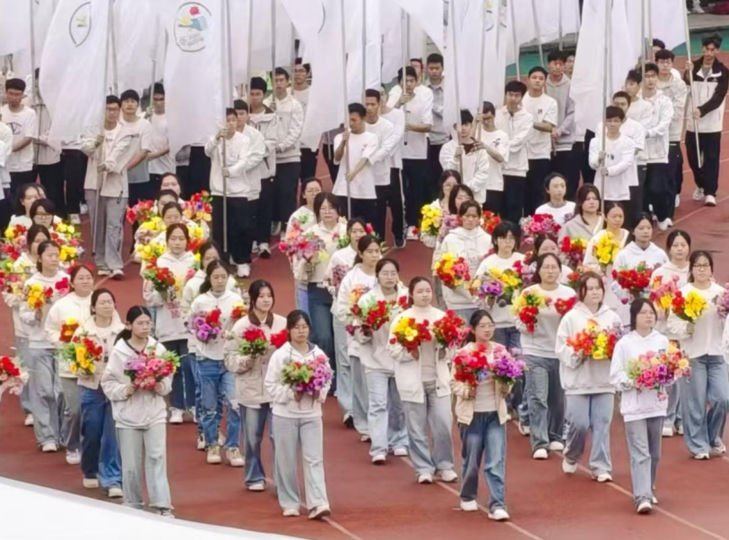 10月31日上午,微风和煦,校园赛场氛围热烈。太阳网集团tcy87222025年校园体育文化节暨大学生田径运动会在红湘校区北校田径场盛大启幕。全体在校校领导、党委委员,各职能部门负责人,二级学院党委书记及师生代表齐聚赛场,共同迎接这场集体育竞技与文化展示于一体的校园盛会。其中,太阳集团tcy8722精心组建的鲜花队与方阵代表团,以饱满的精神状态精彩亮相,成为开幕式上一道亮丽的风景线。