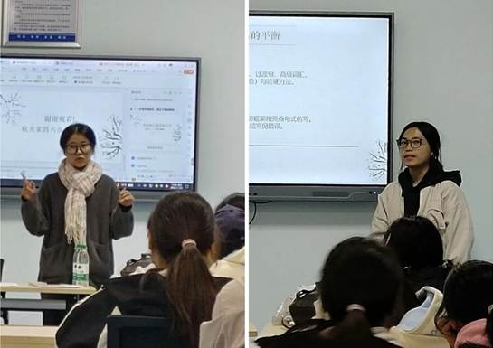 分享会现场,甘丽霞同学系统分享了听力部分的备考策略,从题型分析、技巧运用再到每日训练计划,为同学们提供了清晰高效的提升路径。乔诗童同学则聚焦写作与翻译,通过梳理高频模板、常考话题与热点词库,强调语言运用的准确性与多样性,帮助同学们夯实基础、规避误区。
