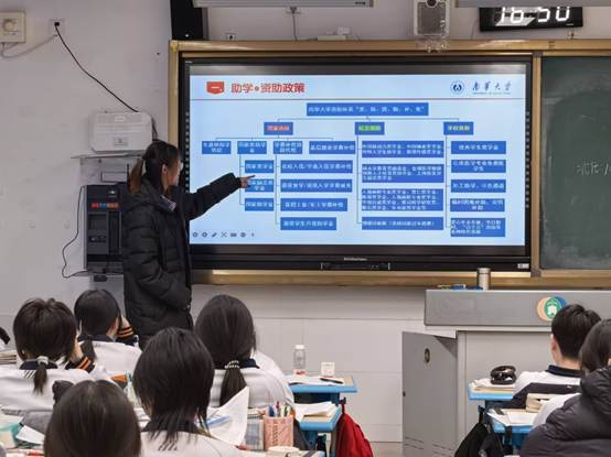 太阳集团tcy8722孙梅琦、宿珂豪、刘若彤、刘嘉欣、贺心蕊、陈教缘、刘嘉仪等7位同学,带着学校的嘱托与感恩之情,先后深入东营市第一中学、烟台市莱州六中、漯河五高、邵阳市第二中学、邵东创新高级中学、常德市武陵区第一中学等6所中学。在宣讲现场,他们结合自身受助经历与大学生活体验,化身政策“解说员”和求学“引路人”,以通俗易懂的语言,细致解读了国家“奖、助、贷、勤、补、免”全方位资助体系,重点讲解生源地信用助学贷款申请流程、国家奖助学金评审标准,以及2024—2025学年资助政策最新调整内容。他们将复杂的政策条文转化为通俗易懂的“求学指南”和“圆梦攻略”,耐心解答了众多高三学子及家长对于大学费用的疑虑。
