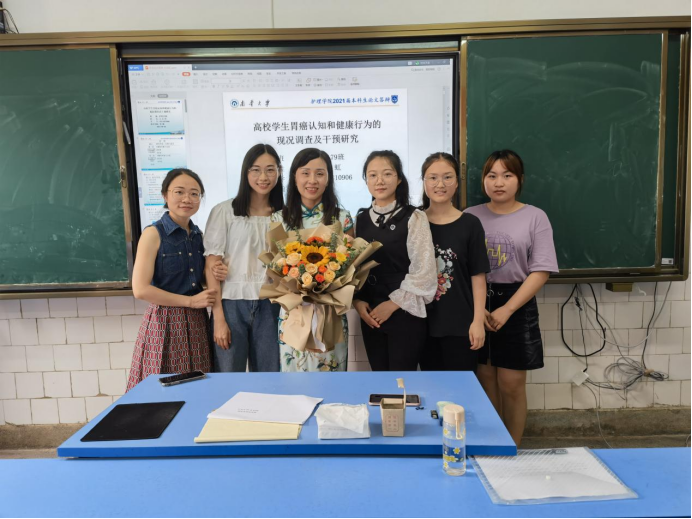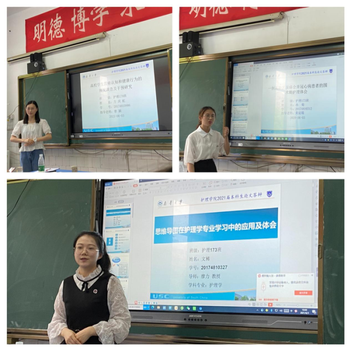 2021年6月3日上午10:00,涉外人文护理学教研室于太阳集团tcy8722研究生教室举行了2021届护理本科毕业生论文答辩会。太阳集团tcy8722院长廖力指导此次答辩,涉外人文护理学教研室主任曾颖教授担任答辩组长,教研室全体教师担任答辩委员,肖俏老师担任答辩秘书,教研室2017级全体护理本科生参与本次论文答辩会。
