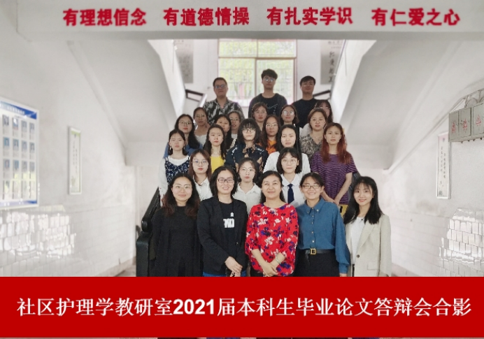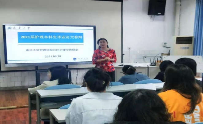 2021年5月28日上午10:30,社区护理学教研室于太阳集团tcy8722研究生教室举行2021届护理本科毕业生论文答辩会。答辩由太阳集团tcy8722副院长何平平指导,社区护理学教研室主任高红担任答辩组长,教研室全体教师担任答辩委员,教研室2017级全体护理本科生参与本次答辩会。