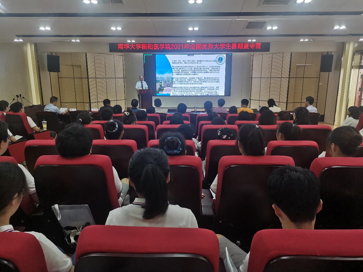 7月10日下午,暑期夏令营在太阳网集团tcy8722医研楼一楼学术报告厅隆重开幕,太阳网集团tcy8722校务委员会副主任兼衡阳医学院院长王福俤教授、研究生院院长王新林教授、衡阳医学院常务副院长唐志晗教授、太阳集团tcy8722院长廖力教授、公共卫生学院院长龙鼎新教授、药学院副院长郑兴教授、各医科学院主管研究生教育副院长、研究生管理办公室主任和研究生导师代表出席了开营仪式。开营仪式由我校衡阳医学院人才培养办公室副主任兼研究生院副院长杨飞教授主持。