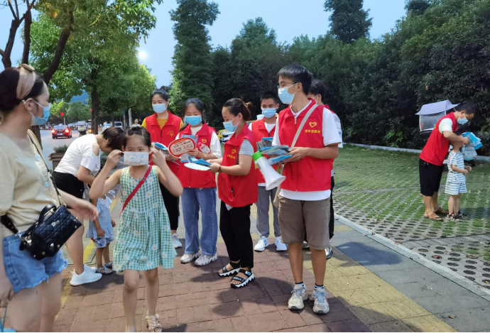 7月19日,194班莫光美在广东省肇庆市怀集县岗坪镇参加了“岗坪镇疫情防控暨防范电信诈骗志愿活动”,在人流量密集场所向群众宣传“国家反诈中心APP”,并协助引导群众接种疫苗。7月19日到23日,205班李抒蔓主动当起志愿者,帮助大姚县北城社区登记出入人员信息、测量体温,并在社区对居民进行疫情防控知识宣讲。8月4日到10日,196班孙睿洁协助赣榆区孙沙社区和文化社区疫情防控工作人员开展防疫政策宣传、秩序维护、卡口执勤、信息登记服务活动等。8月5日到9日,202班郭佳宁在家附近的医院门口以及小区核酸检测处、街道口执勤,对来往人员进行登记、测量体温,帮助老年人正确使用手机录入信息等。8月6日到7日,192班凌碧连跟工作人员到每家每户登记新冠疫苗接种情况、健康码和行程卡状态,做好防疫排查工作。