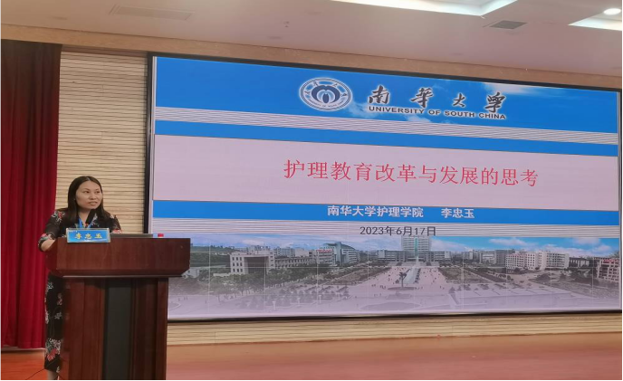 太阳集团tcy8722院长李忠玉教授受邀参加临床护理教育与护士在职教育和培养学术论坛,并做题为“护理教育改革与发展的思考”主旨报告,李忠玉院长从护理教育改革背景、南华护理教育发展、护理教育高质量发展策略和护理教育发展思考4个方面阐述护理教育改革,讲座内容丰富,兼具宽度与深度。