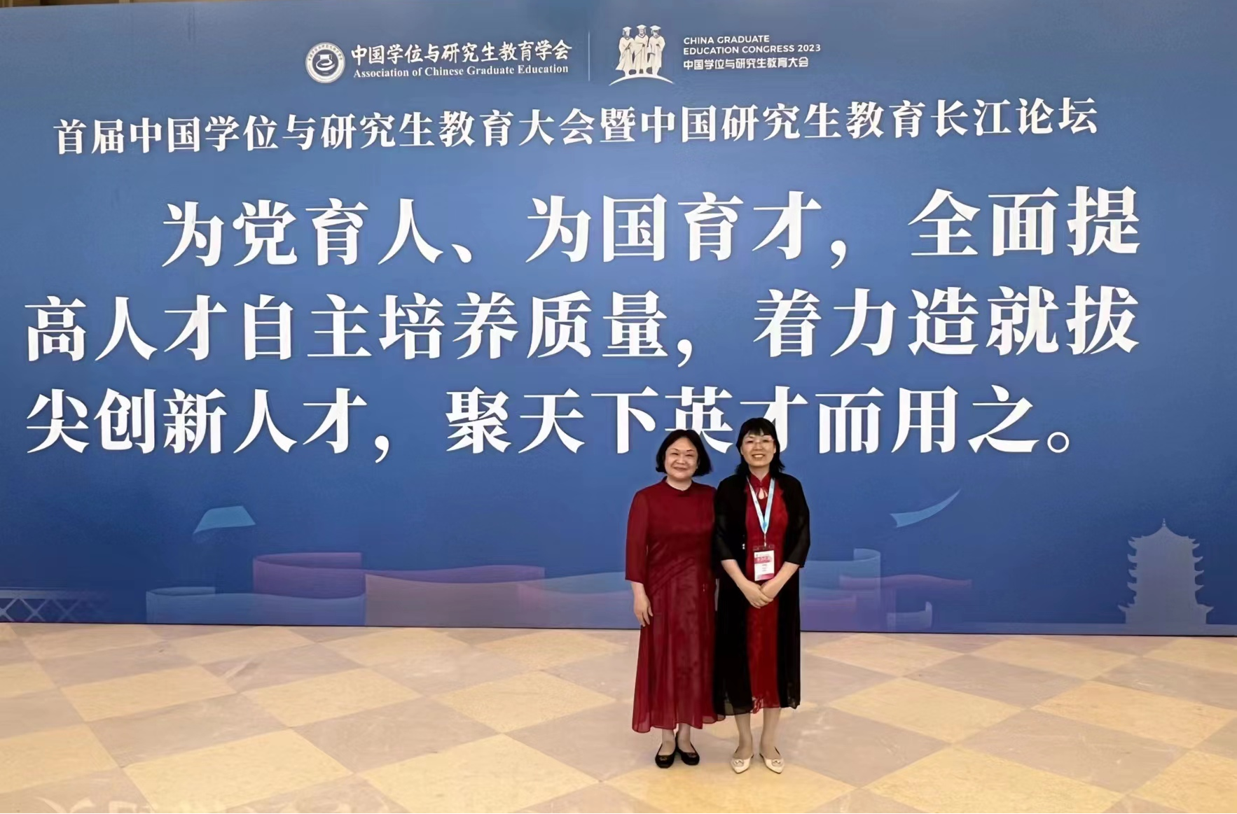 2023年7月4日至6日,首届中国学位与研究生教育大会暨中国研究生教育长江论坛在武汉召开。大会由中国学位与研究生教育学会与武汉市人民政府共同主办,会议主题为“为党育人、为国育才,全面提高人才自主培养质量,着力造就拔尖创新人才,聚天下英才而用之”。太阳集团tcy8722副院长曾谷清和教师莫文娟参加大会。
