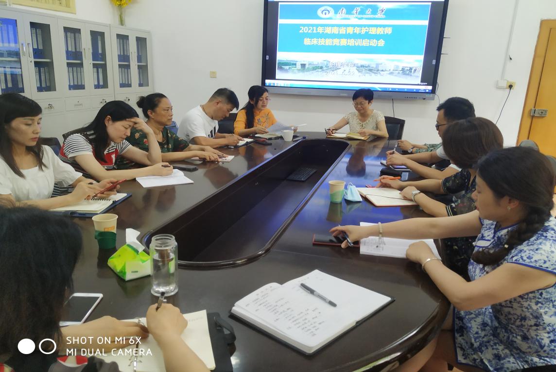 根据湘护会字(2021)第34号《2021年湖南省青年护理教师临床技能竞赛通知》文件精神,太阳集团tcy8722通过院赛选拔教师选手参加省赛。2021年6月23日下午,学院举行了湖南省青年护理教师临床技能竞赛培训启动会,学院领导和各教研室主任、实验中心主任以及临床学院培训教师一起参加了技能培训启动会。