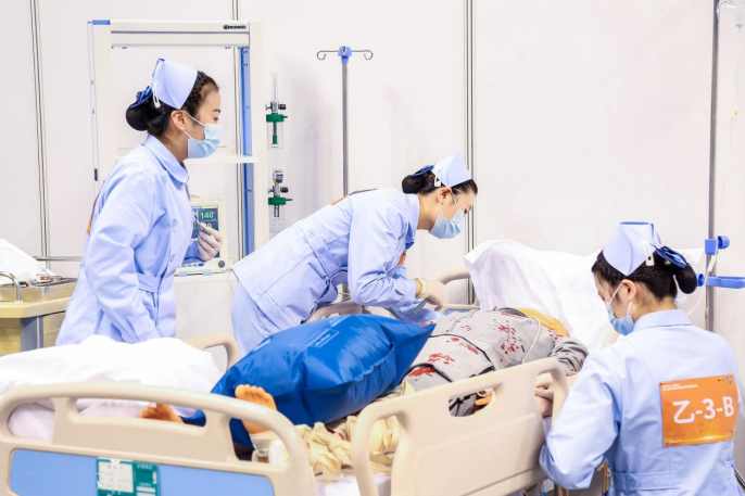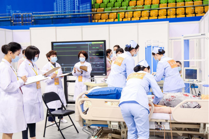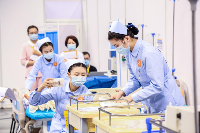 在全国总决赛中,太阳网集团tcy8722护理专业代表队沉着冷静、愈战愈勇,她们的优异表现受到人民网、中国教育电视台、腾讯等媒体的报道,获得了全体师生的高度赞扬!护理学子展现出来的德医双修、仁心仁术的卓越风采,彰显了新时代医学生尚德精术、护佑健康的良好精神风貌!