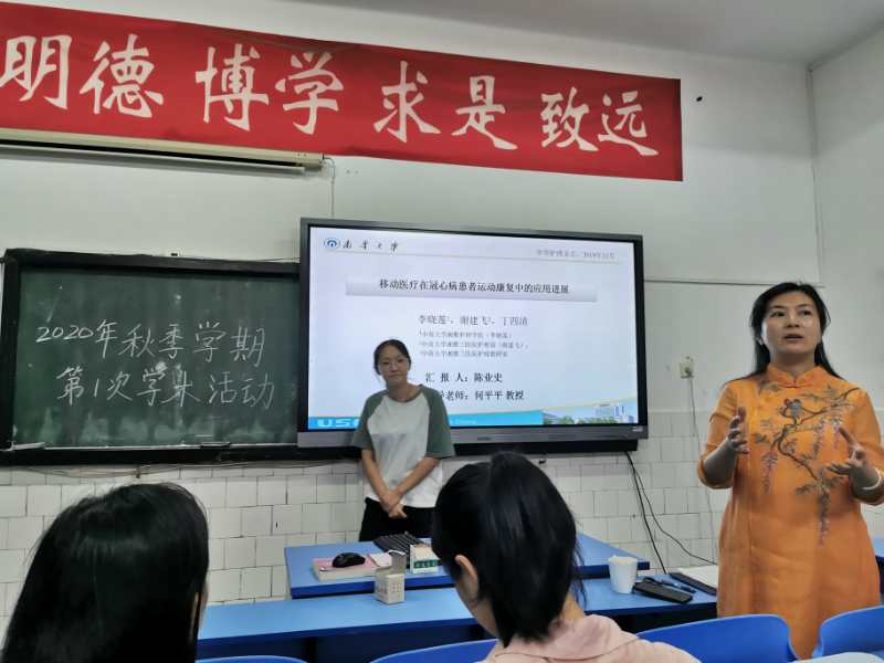 当天晚上,199班参加了由班主任何平平老师指导的研究生学术活动。本次学术活动中,首先由19级研究生周维学姐对英文文献《A comprehensive method to develop a checklist to increase safety of intra-hospital transport of critically ill patients》开展的英文汇报,讲解了危重病人院内运输的安全性研究,同学们深入思考,踊跃提问。随后18级研究生陈业史学姐对《移动医疗在冠心病患者运动康复中的应用进展》一文进行文献结构分析,为同学们的综述撰写提供思路。
