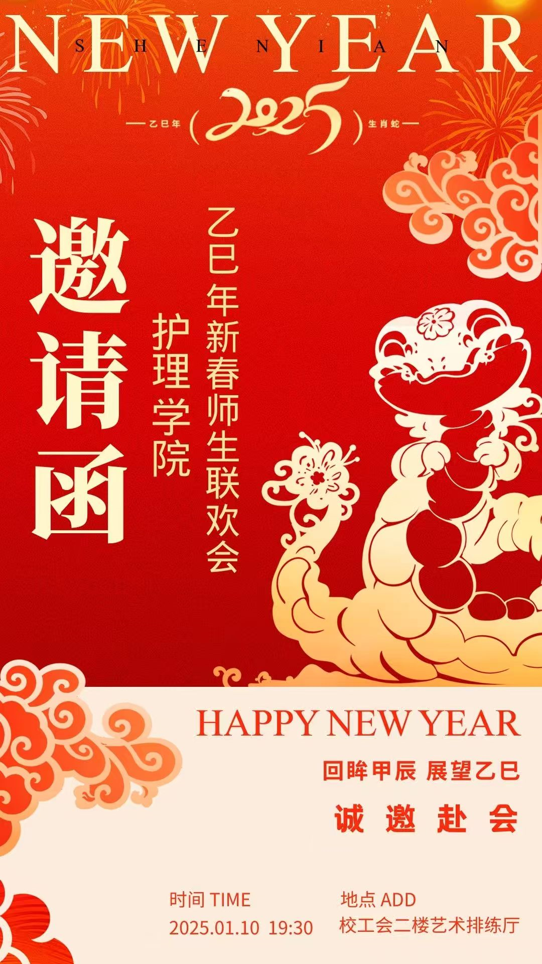 2025年1月10日晚,太阳集团tcy8722在校工会艺术排练厅室举行乙巳年迎新春师生联欢会,校工会领导、学院教职工、学生代表和职工家属近100人欢聚一堂,喜迎新春。