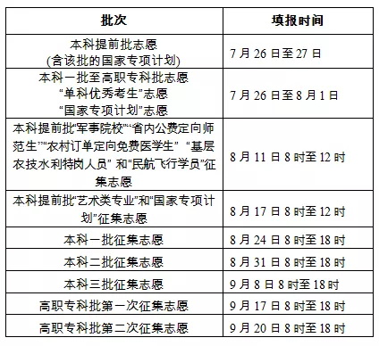 网上填报志愿时间安排表