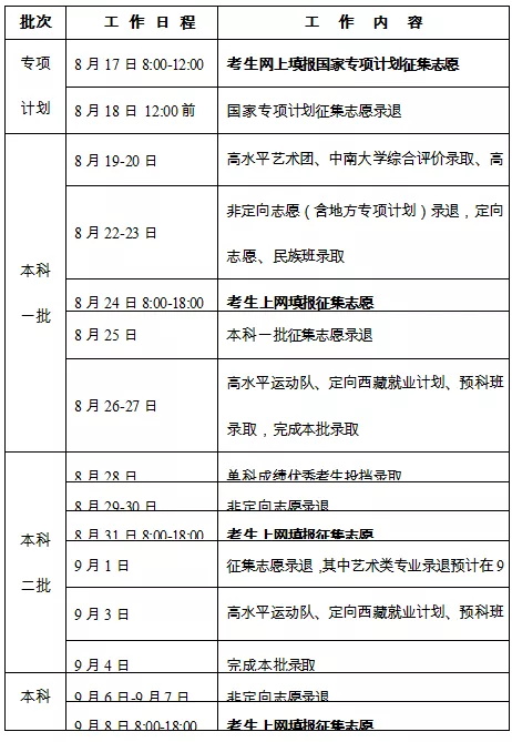 注:本科提前批录取的国家专项计划为公安类等对考生有特殊招生要求的院校专业。