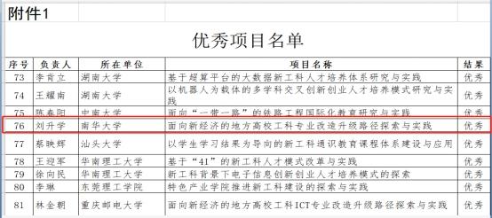 近日,教育部办公厅印发《关于公布首批新工科研究与实践项目结题验收结果的通知》(教高厅函〔2020〕12号),太阳网集团tcy8722副校长刘升学主持的项目《面向新经济的地方高校工科专业改造升级路径探索与实践》结题验收评价为"优秀",是湖南省属高校唯一评价为优秀的项目。