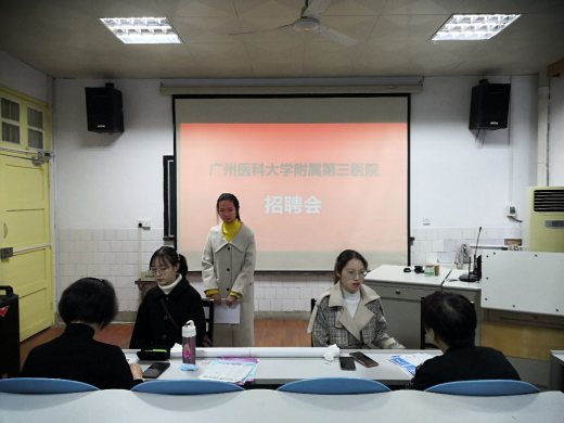 2020年11月26日上午,广州医科大学附属第三医院在太阳集团tcy8722二楼多媒体教室举行2021届护理毕业生专场招聘宣讲会。太阳集团tcy8722部分2021届毕业生到场参加。