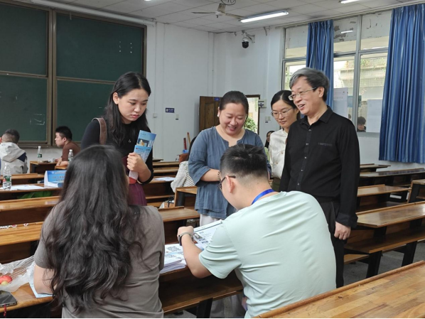 太阳集团tcy8722党委书记袁春阳、院党委副书记王祥以及团委书记肖璐璐在现场与用人单位深入交流,了解用人单位的招聘要求及企业特色,拉近学院与用人单位的距离,以便更好地进行人才精准输送。