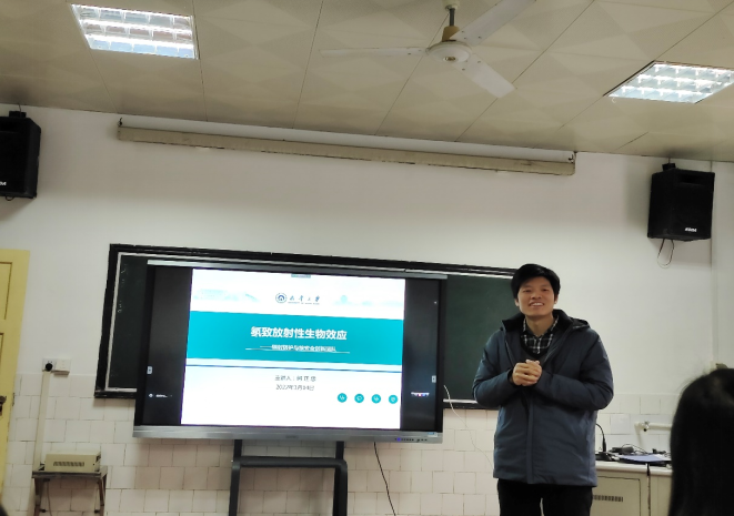 随后,何正忠博士代表辐射防护与核安全创新团队做了关于“氡致放射性生物效应”的专题讲座。何博士从氡的特性、危害、生物学效应和防护四个方面出发,引入电离辐射生物效应的概念、作用机理和氡的生物学效应,揭示氡在肺癌发生过程中承担的角色,并结合肺癌的一项队列研究和云南锡矿的氡暴露事件、深入剖析了氡与恶性肿瘤以及其他系统疾病暴露之间的关系。何博士还从物理、化学和药物三个方面分享了如何进行防护。讲座内容丰富、讲解细致。