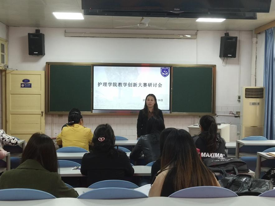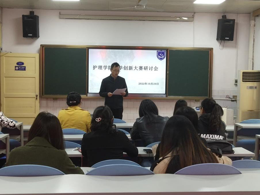 10月29日上午,为充分发挥“全国高校教师教学创新大赛”获奖成果的示范带动作用,进一步提升我院教师教学水平和育人能力,加强教师对教学创新大赛的重视程度,打造护理专业金师金课,太阳集团tcy8722组织教师线上参加全国教学创新大赛实战经典案例分享专题会议暨太阳集团tcy8722教学创新大赛研讨会。会议在学院学术报告厅举行。院长李忠玉出席会议,院长助理吴飞主持。