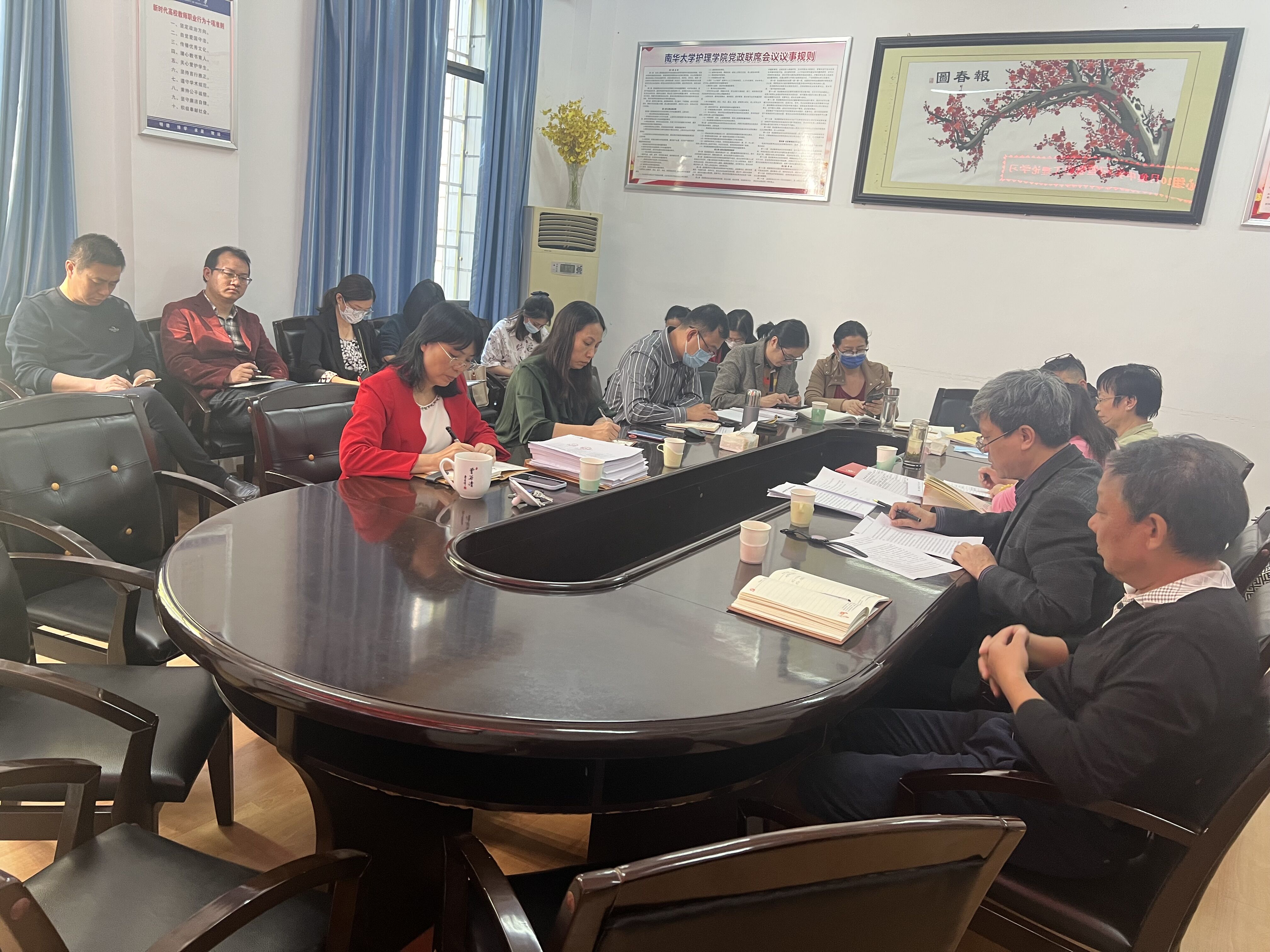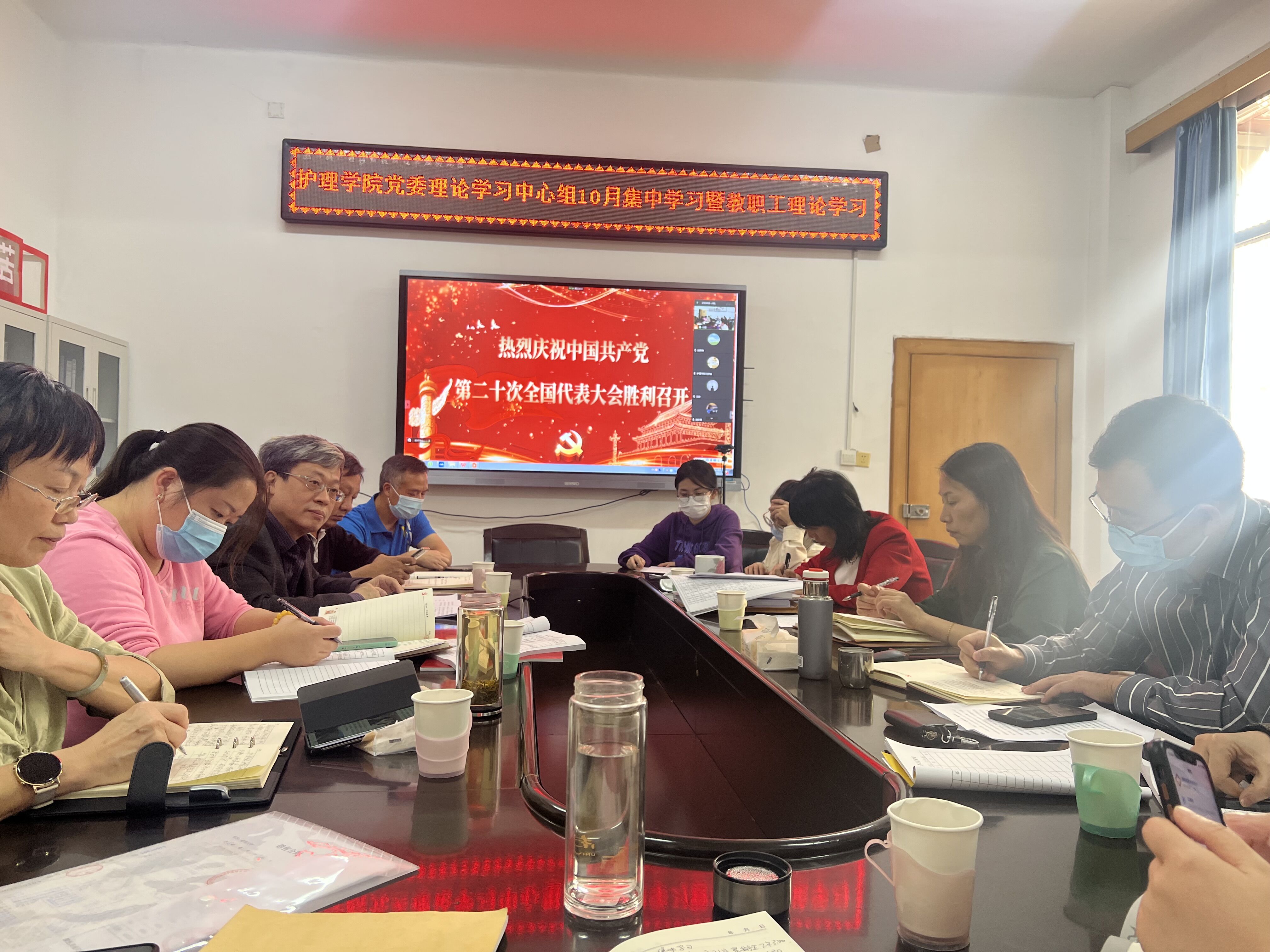 2022年10月21日下午,太阳集团tcy8722党委理论学习中心组10月集中学习暨教职工理论学习在学院会议室举行。学习主题是“深入学习领会党的二十大报告精神,全面贯彻党的教育方针,落实立德树人根本任务,汲取护理专业开办37年和学校成立64年以来的宝贵经验和精神财富,奋力推进学院一流建设,奋力推进新时代高水平大学建设。”集中学习在线上线下同时进行。全体院领导、党委委员、支部书记、科室负责人、院团委书记、学术委员会成员代表、教师党员代表、学生党员代表和团学干部代表参加线下学习。其他教职工和学生党员参加线上学习。党委书记袁春阳主持学习。