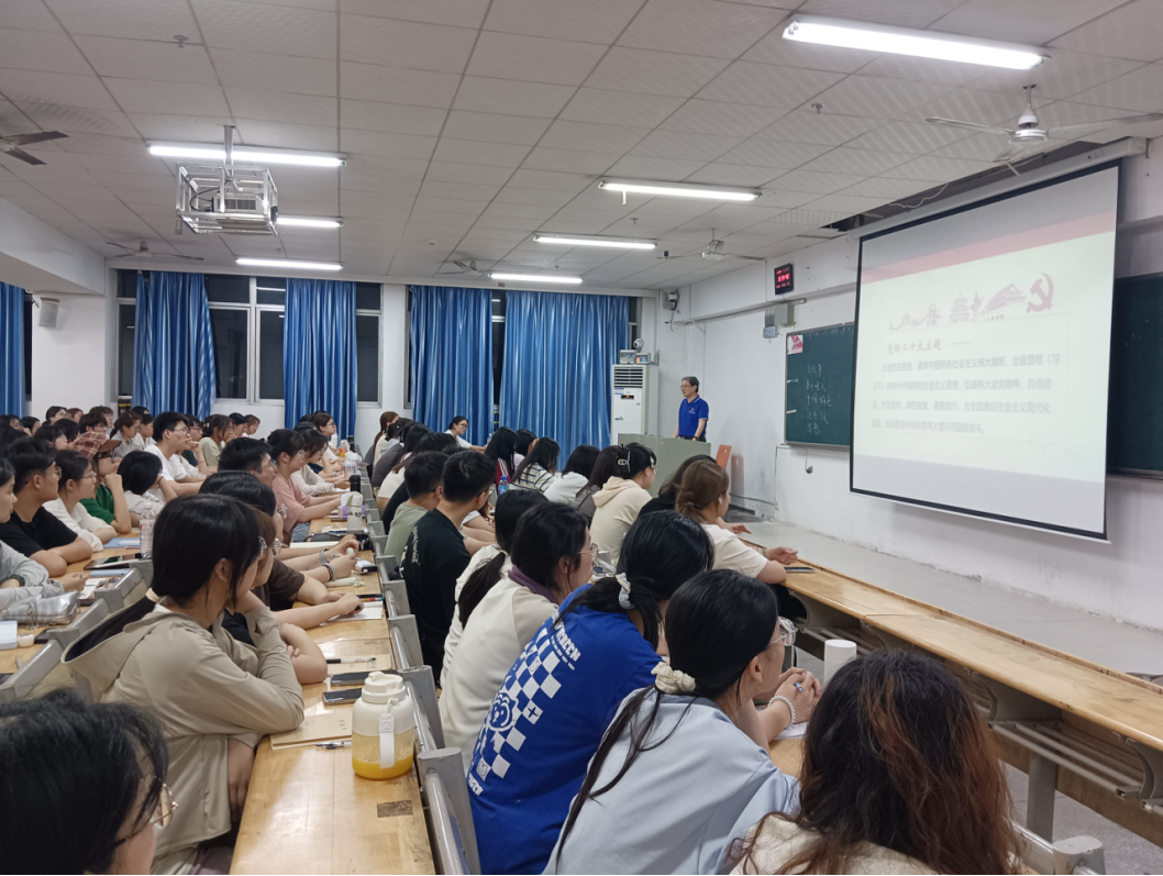 为深入贯彻落实党的二十大精神,进一步加强入党积极分子的党性修养,提升政治素养,4月11日晚,太阳集团tcy87222025年春季学期入党积极分子培训班第一讲在南华楼311举行,太阳集团tcy8722原党委书记袁春阳应邀授课,学院150余名入党积极分子参与。